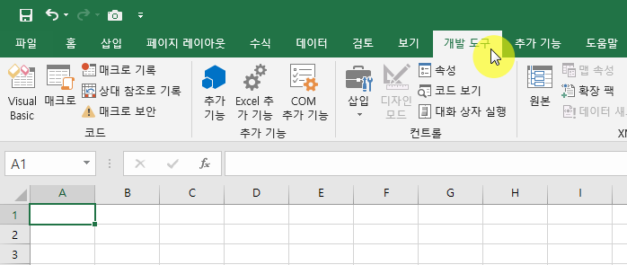5.보기 탭 옆에 개발 도구 탭이 있습니다.