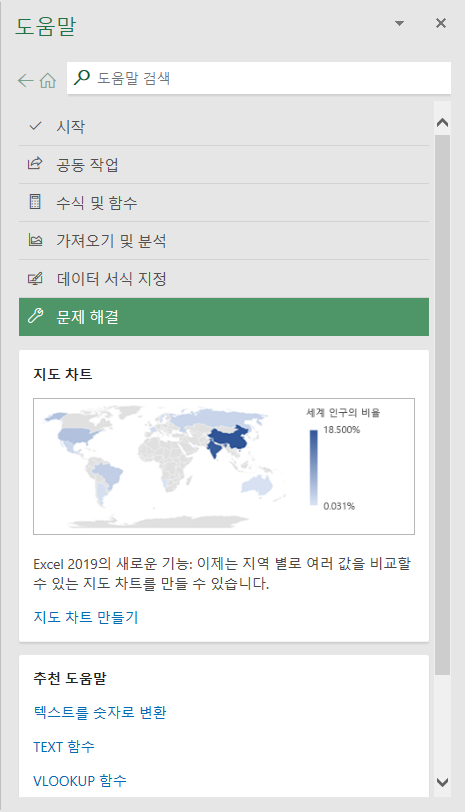 Excel 도움말을 엽니다.