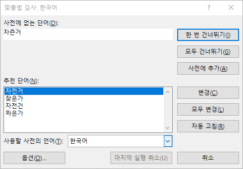 맞춤법 틀린 것이 없으면 아래와 같은 창이 나타납니다.