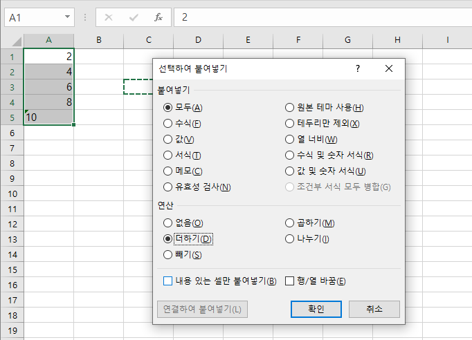3a. A1 : A5 범위에 빈 셀을 추가하여 1 단계와 2 단계를 결합 할 수도 있습니다.
