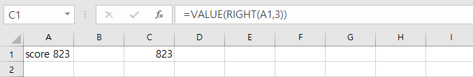 4b. 여기 또 다른 예가 있습니다. RIGHT 함수 (또는 다른 텍스트 함수)를 사용하여 텍스트 문자열에서 문자를 추출한 다음 VALUE 함수를 사용하여 이러한 문자를 숫자로 변환합니다.