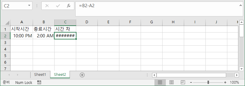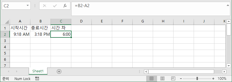 같은 날 두 시간의 차이를 계산하는 간단한 공식부터 시작하겠습니다.